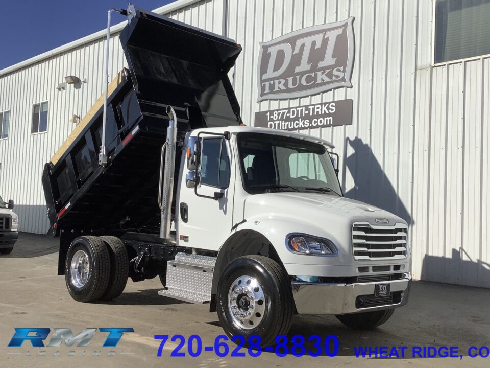 2026 M2-106 Plus 10ft Dump Truck, Cummins L9 8.9L Diesel Engine With 330 HP, 6 Speed Automatic Allison 3500RDS Transmission With Push Button Range Selector, Exhaust Brake, Dual Rear Wheels, Battery Shut Off Switch, 26,000 Lbs. GVWR, 12,000 Lb. Front Axle, 21,000 Lb. Rear Axle, 84” Cab to Axle, 154” Wheelbase, Single Rear Axle, Air Brakes, Air Ride Suspension, Rear Wheel Drive, Regular Cab, A/C, AM/FM/Aux Radio, Power Windows, Locks, And Mirrors, Heated Mirrors 3 Passenger Cloth Seating, Air Ride Driver Seat, Passenger Bench Seat, Under Seat Trunk/Storage, Rubber Floors, 70 Gallons Fuel Capacity, 22.5 New Polished Aluminum Wheels with New Continental HDL2 315/80R/22.5 Front Tires, 11R 22.5 Rear Tires, New 10’L Godwin 300U Dump Body, 30″ Sides With 8″ Boards, Telescopic Hoist, With Muncie Hydraulics Controller, Pintle Hitch Plate With Electrical Connections, Air Locking Tail Gate, Electric Tarp With Arm Kit, Air Glad Hands And Electric Brake Controller. This Dump Truck with Just 60 Miles is DOT Inspected And Available In Wheat Ridge, CO. Financing Options Available.